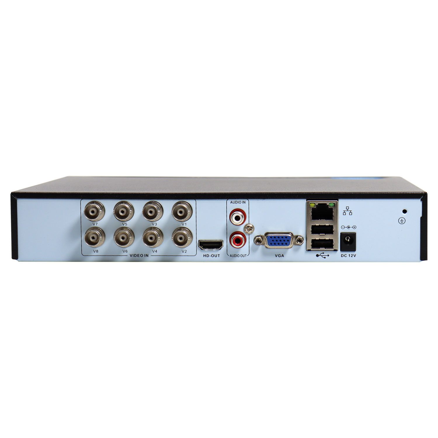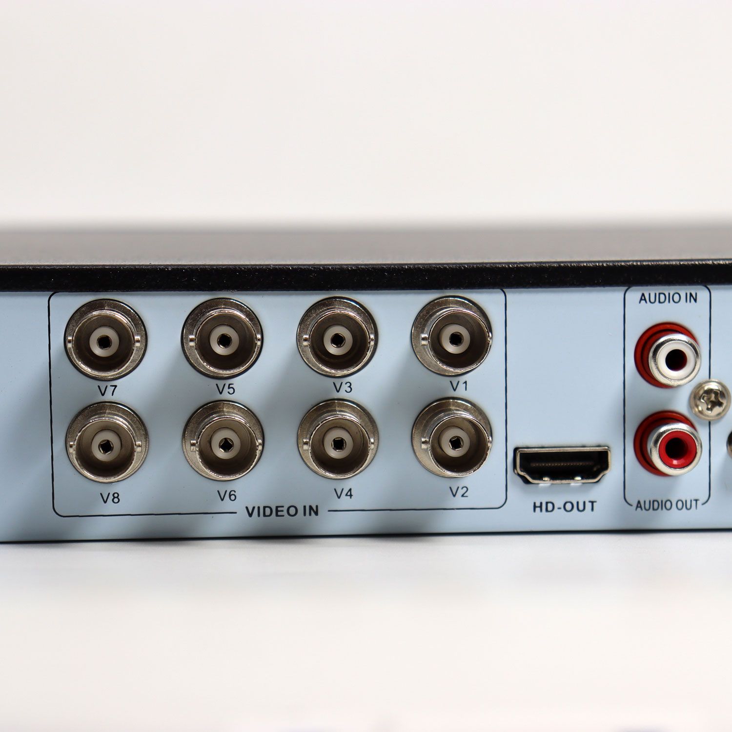 - Video input 8ch BNC Video output 1ch VGA, 1ch HDMI Loop Vout N/A Audio I/O 1/1 Alarm I/O 0/0 Network interface RJ45 10M/100M self-adaption PTZ control 1*RS485, Support kinds of PTZ protocols USB 2* USB 2.0 ports HDD 1*SATA ports (Max 8TB/per) Wireless 3G, WIFI (extend via USB)