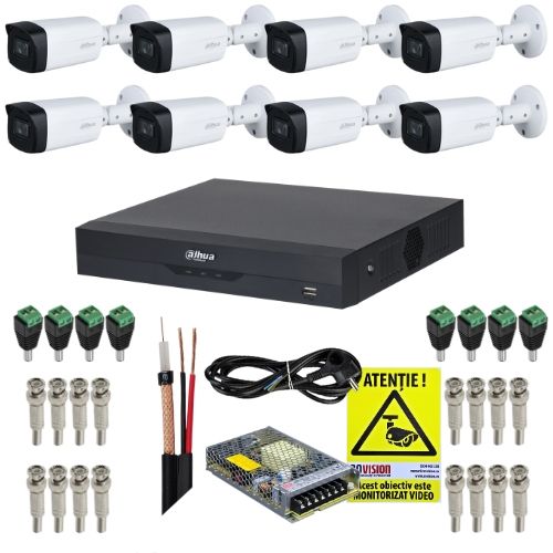 - 8 x Dahua analog cameras , 4K 8MP, IR 40m, HAC-HFW1800TH-I4-0280B , 2.8mm lens, IP67