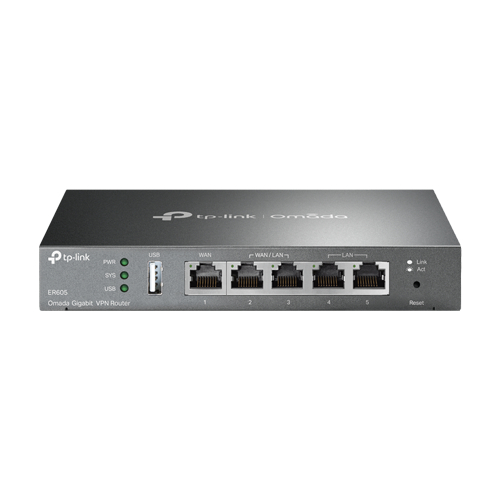 TP-Link ER605 is a high-performance Omada Gigabit router, great for data processing and equipped with advanced features such as VPN IPsec/PPTP/L2TP, traffic balancing, user access management, protection against DoS (denial of service) attacks, bandwidth control, session limiting and PPPoE Server. It is ideal for small and medium-sized companies or environments with a large number of users that require an efficient and secure network.