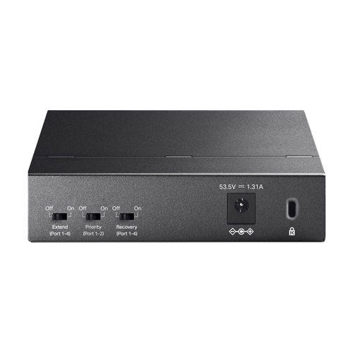 It features 4 PoE (Power over Ethernet) ports, capable of automatically detecting and supplying power according to IEEE 802.3af standards for powered devices (PD). By simultaneously transmitting power and data through a single cable, this switch facilitates network expansion where there is no access to power sources, allowing devices such as access points (APs), IP cameras or IP phones to be connected in locations no power infrastructure or connections available.