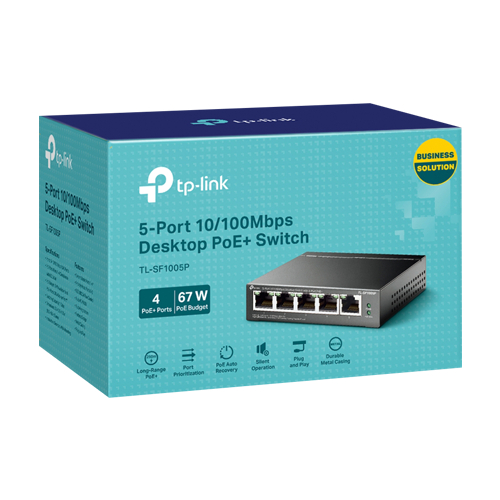 The TL-SF1005P is a compact 5-port switch that requires no configuration.